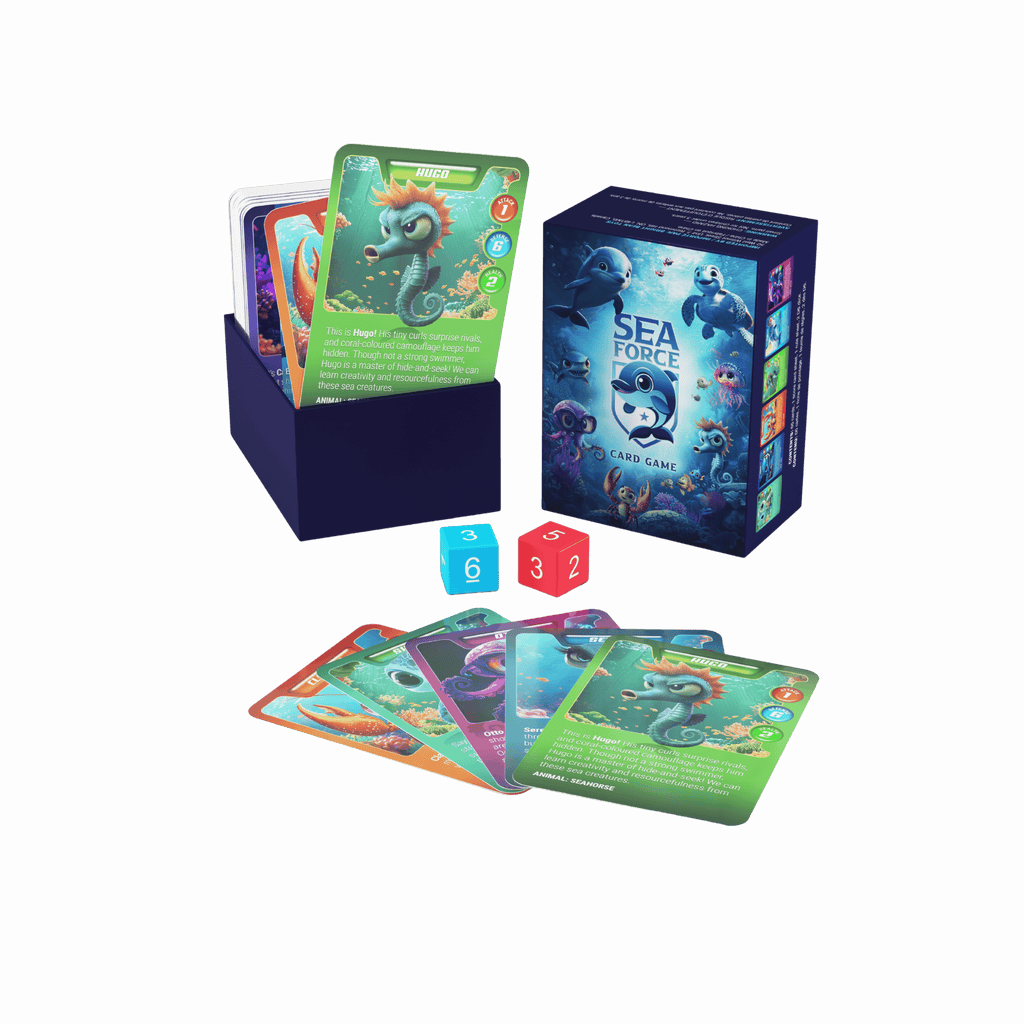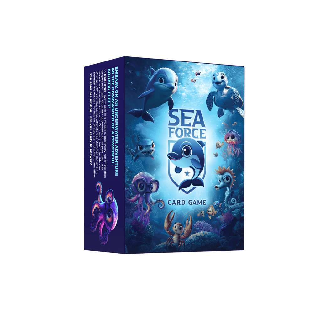 Command an ocean army, outsmart your rivals, and become the ultimate Sea Commander! SeaForce is the family card game where kids ages 8+ learn math and strategic thinking through exciting sea creature battles—without realizing they're learning. 2-6 players, 20-30 minute games.